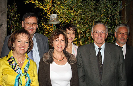 Unser Bild zeigt von links: Apothekengründerin Regina Simon, Inhaber Hermann Gehrig, Filialleiterin Dagmar Schäfer, Apothekenleiterin Dr. Anne Matthée, Alt-Bürgermeister Alfred Reinmuth und Bürgermeister Theo Haaf. (Foto: privat)