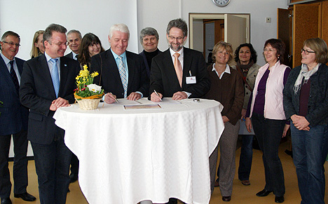 Eberbach/Schwarzach. Junge Menschen mit einer geistigen Behinderung werden bislang hauptsächlich in Sonderschulen auf das Berufsleben vorbereitet. Eine Erweiterung bildet die Berufsvorbereitende Einrichtung, kurz BVE. Eine solche wird zum Schuljahr 2011/2012 in Eberbach eingeführt. Träger dieses Kooperationsmodells sind hier die Theodor-Frey-Schule und die Schwarzbach Schule der Johannes-Diakonie Mosbach. Mit ihren Unterschriften gaben dieser Tage die künftigen Kooperationspartner den Startschuss für die BVE, die der in der UN-Behindertenrechtskonvention formulierten Forderung nach Inklusion in der Schule nachkommt.