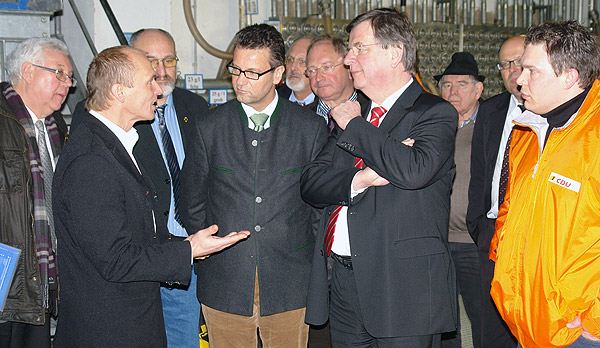 Die beiden CDU-Landespolitiker Willi Stächele und Peter Hauk danken den Firmenvertretern bevor es weiterging in das Hotel „Limbacher Hof“. Hier begrüßte der stellvertretende CDU- Gemeindeverbandsvorsitzende Michael Müller vor vielen Gästen die Gäste.