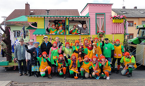 Neben dem preisgekrönten Motivwagen, gehört auch Landwirt Alfons Schmitt aus Weisbach zum festen Bestandteil jeder Kampagne, stellt er doch Anhänger und Zugfahrzeug zur Verfügung und ist in dieser Saison sogar noch als alleiniger Fahrer an den vier Umzügen aktiv.