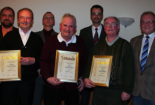 Als eifrigste Probenbesucher und Teilnehmer bei den insgesamt 41 durchgeführten Veranstaltungen wurden ausgezeichnet: Gerald Hemberger, Bernhard Schäfer und Kurt Schäfer (0 Fehlstunden), Alois Friedel, Raimund Friedel, Artur Galm, Manfred Müller und Andreas Scholl (1), Günther Baumbusch, Helmut Korger, Werner Matt und Stefan Scholl (2), Uwe Lenz, Oskar Püchner und Horst Ruef (3), Karl-Heinz Keller, Karl Link, Erwin Müller und Kurt Müller (4).