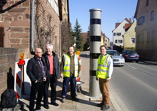 Mit der Aufstellung einer sogenannten Blitzersäule – einer stationären digitalen Geschwindigkeitsmessanlage, wie es korrekt heißt – hoffen Ortsvorsteher Gerald Ehret und sein Ortschaftsrat, die Disziplin der Autofahrer zu verbessern. Die hochmoderne Anlage, die dieser Tage von Mitarbeitern einer Heilbronner Firma aufgebaut wurde, bemerkt im Abstand von 70 Metern ein herannahendes Auto und misst bei 50 Metern Entfernung per Lasertechnik die Geschwindigkeit. Möglich ist die Messung, für die das Landratsamt zuständig ist, übrigens in beide Richtungen.