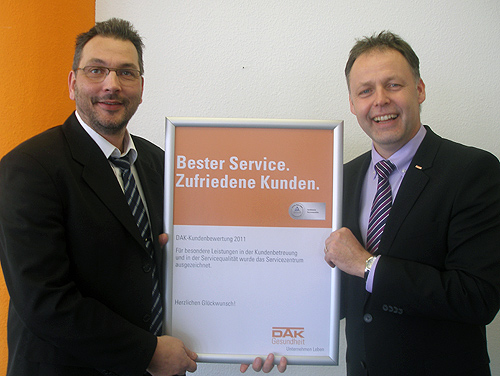 Zum Jahreswechsel 2012 wurde aus der bisherigen Krankenkasse DAK die neue DAK-Gesundheit. „Wir freuen uns über das Kompliment unserer Kunden und werden unseren Service auch nach der Fusion weiter ausbauen“, sagt der Leiter des Servicezentrums Ludger Geier. Bei den Leistungen der Kasse stehe die Gesundheit der Versicherten im Alltag und in der Arbeitswelt im Zentrum. Ab April würden die Mitglieder außerdem acht Euro im Monat sparen, da der bisherige Zusatzbeitrag gestrichen werde.