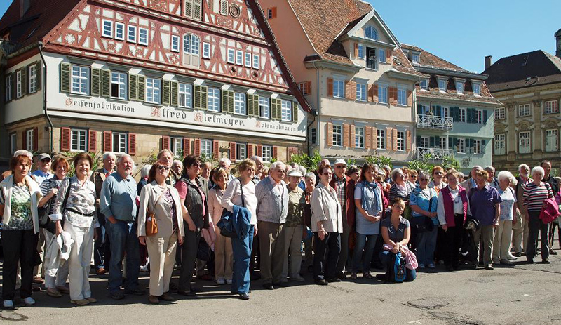 Bei strahlendem Sonnenschein erfuhren die Teilnehmer in zwei verschiedenen Stadtführungen viel über die Geschichte und den Weinanbau in Esslingen. In historischen Gewändern nahmen die Stadtführerinnen die Besucher mit auf eine Reise in frühere Zeiten. Teilweise wurde die Geschichte szenisch dargestellt. So wohnten die Volksbank-Ausflügler einer historischen, mittelalterlichen bei und wurden sogar mit eingebunden. Bei der sehr interessanten und anschaulichen Führung in der ältesten Sektkellerei Deutschlands der Sektkellerei Kessler durfte natürlich auch die Verkostung im Anschluss nicht fehlen. Nach einer gemeinsamen Stärkung im Biergarten des ältesten Gasthauses in Esslingen traten die Teilnehmer gut gelaunt die Heimreise an und freuen sich bereits auf einen nächsten Ausflug.