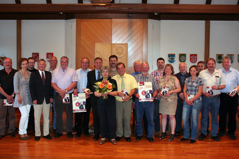 „Bei allem, was wir erarbeitet haben in diesem Werk, muss ich doch sagen, es hat jedem Einzelnen viel Spaß gemacht“, meinte Roland Grimm abschließend seiner Ausführungen. Ortsvorsteher Klaus Erich Schork überreichte die ersten Ausgaben des 400 Gramm schweren „m11“ mit seinen über 170 Berichten und über 240 Fotos an Bürgermeister Dr. Norbert Rippberger sowie die Vertreter der Herausgeber-GbR, Alois Friedel (HVV) und Gernot Grimm (VöG), bevor er den zahlreichen Text- und Bildlieferanten, besonders dem sehr kurzfristig für Herbert Knapp eingesprungenen Christoph Müller, seinen Dank und ein dickes Lob aussprach, ebenso wie an die Sponsoren und das Redaktionsteam Manfred Grimm, Roland Grimm, Ernst Hauk, Gernot Hauk, Klaus Meixner, Christoph Müller, Thomas Müller, Willi Müller, Klaus Schork, Wilhelm Schwender und Marco Scheiwein, der auch für Layout, Satz und Druck verantwortlich zeichnete.