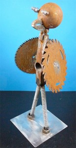 Trotz zahlreicher Suchaktionen konnte die Tatwaffe, bei der es sich um eine ca. 40 cm hohe Eisenskulptur in Form eines Kranichs (s. Foto – zum Vergrößern anklicken) handeln könnte und Sabine Jauch in ihrem Besitz hatte, nicht aufgefunden werden. Sowohl die Figur als auch eine ca. 55 x 40 cm große, rote Lederhandtasche in der sich eine Geldbörse mit Ausweis, ein schwarzes Nokia-Handy 6280 sowie eine silberfarbene Digitalkamera mit der Aufschrift „Traveller DC 8300“ befunden haben, dürften vom Täter mitgenommen worden sein.