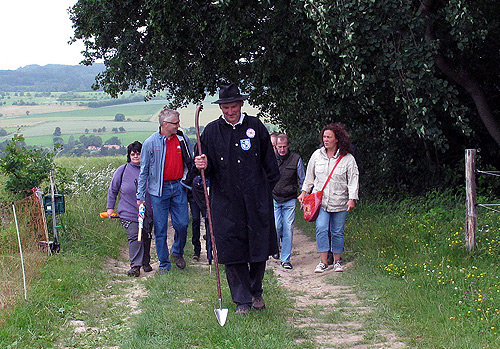 Gut gestärkt ging es dann kurz „um die Ecke“ zur Schafsweide. Dort gab Schäfermeister Bernd Keller zahlreiche Informationen zur Schafhaltung, zu Schafrassen, zur Landschaftspflege und zu den Lammprodukten. Keller musste zahlreiche Fragen beantworten, um die Wissbegierde der Wanderer zu stillen.