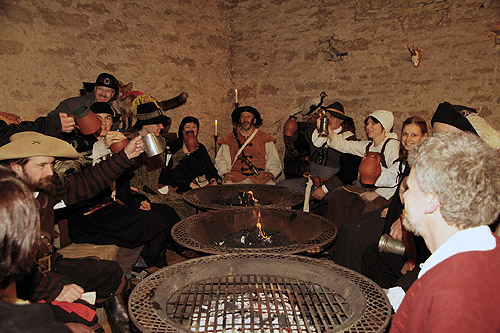 Im Räuberlager wird die Beute ehrlich aufgeteilt, das gebietet die Ganovenehre. Während das Menu auf dem offenen Feuer brutzelt, lauscht man den Erzählungen und Liedern vom Schinderhannes, vom Jennerwein, vom Gödecke-Michel und den Spessarträubern. Bei Wein, Weib und Gesang lassen es sich die Räuber gut gehen, prahlen mit ihren Taten und erfreuen sich ihres Lebens in Freiheit, denn anders als im richtigen Leben muss beim Räuberabend in Adventon niemand mit Verhaftung rechnen.