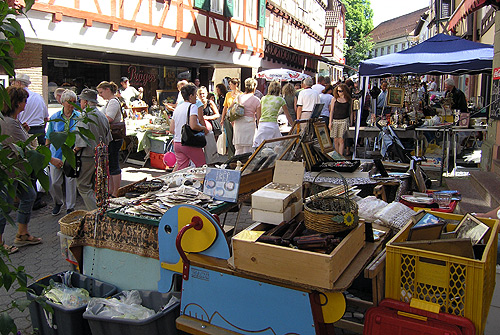 Mosbach. (pm) „Eintauchen in Urgroßmutters Zeiten“ – heißt es am Samstag, dem 14. Juli von 9 bis 17 Uhr in Mosbach. Während der traditionelle Wochenmarkt auf dem Marktplatz im Gange ist, darf man rund um die Stiftskirche und in den Straßen und Gassen der Altstadt nach Herzenslust „krusteln“ und nach Schätzen von „Anno Dazumal“, antikem Mobiliar, kleinen Kostbarkeiten, Nippes und Kultigem aus vergangenen Zeiten stöbern. Ob es ein „neuer“ Schrank aus der Zeit des Biedermeier, Tafelsilber aus der Gründerzeit oder Bücher aus der Jahrhundertwende sein sollen – für den kleinen und größeren Geldbeutel ist beim Mosbacher Antikmarkt sicher etwas Passendes dabei.