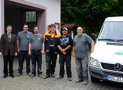 Bürgermeister Thomas Ludwig (links) mit dem Vorarbeiter der Digeno, Bernhard Haas (rechts) und den Digeno-Mitarbeitern Erkan Yilmaz, Patrick Knuth, Peter Ehret und Matthias Norde. (Foto: Liane Merkle)