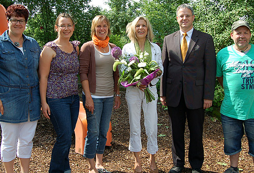Unser Foto zeigt v.l. Hauptamtsleiterin Doris Kohler, Elternbeirätin Denise Eberle, Kindergartenleiterin Sigrid Egenberger, Jutta Häffner-Hacker, Bürgermeister Thomas Ludwig und Personalratsvorsitzender Rudolf Zuber. (lm/Foto: Merkle)