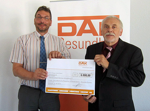 Mosbach/Limbach. (pm) Geldspritze für einen guten Zweck: Die DAK-Gesundheit in Mosbach unterstützt die Arbeit der Selbsthilfegruppe-Skoliose mit 6000,00 Euro. Mit der Förderung der Krankenkasse finanzieren die Betroffenen und ihre Angehörigen das Projekt „Gesundheitliche Prävention in Schulen und Vereinen“. „Wir freuen uns sehr über diese Unterstützung und danken der DAK-Gesundheit“ sagt Walter Gellner, Vorstandsvorsitzender des Bundesverbandes, von der Selbsthilfegruppe-Skoliose. „Das hilft unserer Arbeit.“