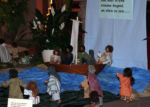 Nach der Begrüßung der Gäste durch die Geistlichen der Seelsorgeeinheit und durch Pfarrgemeinderatsvorsitzenden Matthias Nasselu folgte ein offenes Singen im Kirchenraum, und dann die Präsentation der anstehenden Pfarrheim-Planung. Selbstverständlich war für Speis und Trank bestens gesorgt. Die Kleinen erwartete dabei ein kurzweiliges Kasperletheater im Gruppenraum, die Bücherei war geöffnet und ein Kinder-Flohmarkt sorgte für viel Spaß vor der Kirche. Und der Kindergarten präsentierte biblische Geschichten aus dem Alten und dem Neuen Testament, untermalt mit Liedern und Bildern und biblischen Egli-Figuren im Kirchenraum und auf der Altarinsel.