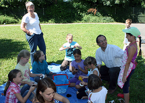 Buchen. „Man merkt, dass die Kinder mit sehr viel Freude bei der Sache sind“, stellte Bürgermeister Roland Burger beim Besuch der von der Stadt Buchen initiierten Kinderferienbetreuung anerkennend gegenüber der Leiterin Stefanie Adrian, der ebenfalls dort mitwirkenden Schulsozialarbeiterin Corona Fertig sowie drei mithelfenden Praktikantinnen fest.