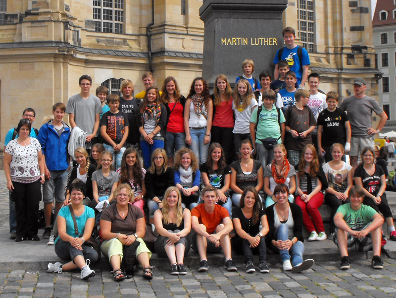 Bevor die Musikerinnen und Musiker den östlichsten Landkreis Deutschlands erreichten, legten sie in Dresden eine Zwischenstation ein. Bei einer so genannten „Peekaboo-Schnitzeljagd“ eroberten die Höpfinger Sachsens Landeshauptstadt – auch liebevoll „Elbflorenz“ genannt – und lernten so die wichtigsten Sehenswürdigkeiten kennen. Entdeckerisch zeigten sich die Kinder und Jugendlichen als es galt, mit Hilfe kleiner Hinweise das nächste Ziel zu erreichen und dort neue Aufgaben zu lösen. Die Schnitzeljagd führte durch die Historische Altstadt zur Frauenkirche, Semperoper, Zwinger, Neumarkt, Stallhof und Fürstenzug, Residenzschloss, den Goldenen Reiter und viele andere Sehenswürdigkeiten.