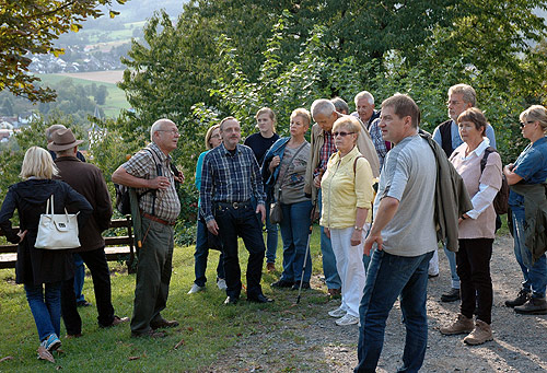 Während der Wanderung wusste Gastronom Armin Treusch viel Interessantes zu Reichelsheim und den heimischen Produkten zu berichten. (Foto: Emmerich)
