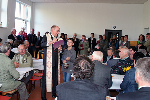 Dass die Segnung der Räumlichkeit nicht bedeutet, dass die Kirche sie in Besitz nimmt, machte Pfarrer Werner Bier in seinen Ausführungen noch einmal deutlich. Es solle lediglich der gute Geist der Gemeinschaft auch im Namen ´Gottes wirken, ganz nach der Predigt im voran gegangenen Gottesdienst: „Wer nicht gegen uns ist, der ist für uns!“ „Dies ist ein großer Tag, den wir gemeinsam feiern“, unter den Klängen dieser Melodie hatte der Kirchenchor „St. Martin“ mit Dirigent Gerd Münch die Feierstunde eröffnet und damit auch die Marschroute für diesen Festtag festgelegt.