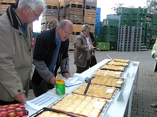 Die Kuchen mit acht verschiedenen Apfelsorten waren in der Lehrküche des Fachdienstes Landwirtschaft vorab von den Fachfrauen für Bewusste Kinderernährung gebacken worden. Die Geschmäcker waren hier allerdings sehr verschieden: Während der eine den Belag gerne weich mag, beißt der andere gerne in noch knackige Äpfel. Ein klassischer Backapfel jedenfalls ist der Boskop, der allerdings erst nach einigen Wochen Lagerung seinen vollen Geschmack erreicht. Bäcker dagegen bevorzugen Jonagold, weil der „immer gleich aussieht und gleich schmeckt“.