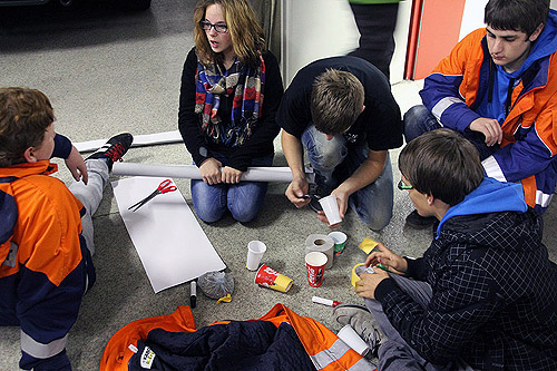 Verschiedene Kennenlern-, Kooperations- und Bewegungsspiele lockerten die Atmosphäre auf. Bei „Catch the Water“ konnten die Jugendlichen gemeinsam eine Wassertransportlösung erarbeiten und der Zahnbürstenmörder fand seine Opfer.