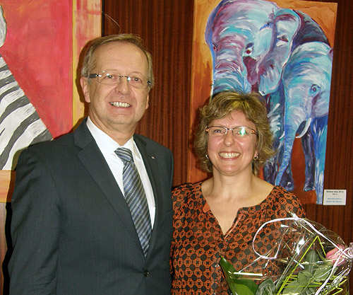 Birgit Gehrig mit Vorstandsvorsitzender Ekkehard Saueressig. (Foto: pm)