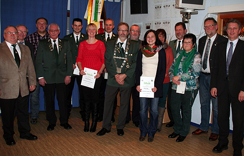 Abschließend überreichte Michel Hemberger noch die Ehrennadeln für die Vereinsmeister 2012 des SV Schloßau: Wolfgang Henning (Jugendklasse männlich – Luftgewehr), Christoph Meixner (Juniorenklasse B männlich – Luftgewehr), Jan Farrenkopf (Schülerklasse männlich – Luftgewehr), Wolf, Stefanie (Schülerklasse weiblich – Luftgewehr), Nico Benig (Schützenklasse – Luftpistole), Martin Hemberger (Schützenklasse – Luftgewehr), Hermann Hogen (Seniorenklasse I – Luftgewehr Auflage), Wolfgang Friedel (Seniorenklasse I – Luftgewehr), Karlheinz Hemberger (Seniorenklasse I – Luftpistole), Franz Zeitler (Seniorenklasse II – Luftgewehr Auflage).