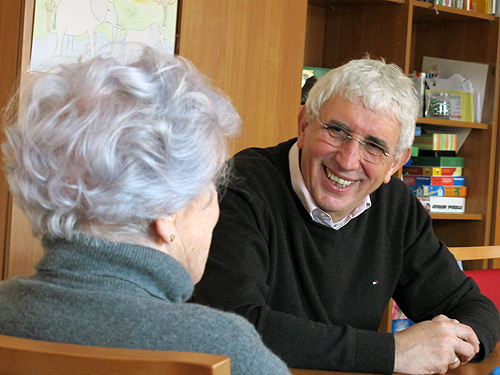 Mit einer einfühlsamen Gesprächsführung konnte MdL Nelius nicht nur die „guten, alten Zeiten“ wieder aufleben lassen, auch erfuhr er so von den Betroffenen unmittelbar, wie sie den Aufenthalt im H.-Galda-Haus erleben.