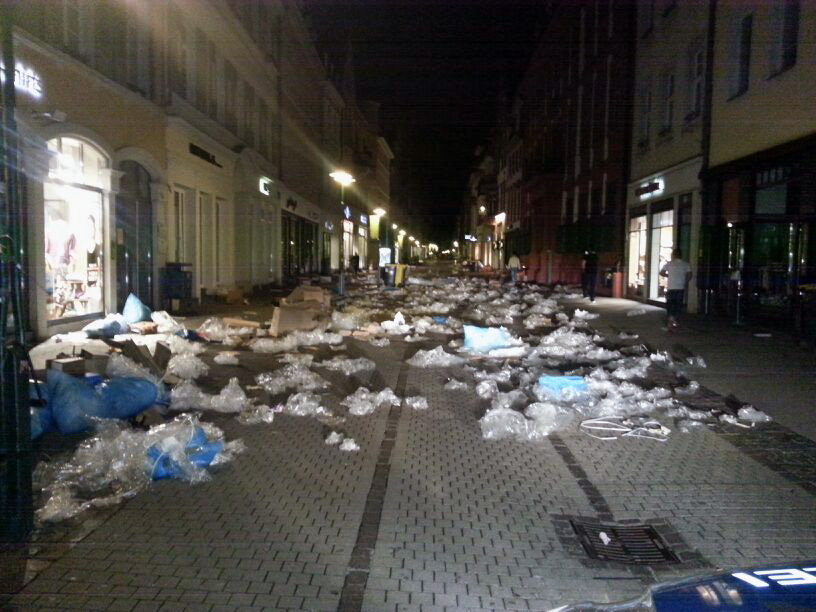 Ein Bild der Verwüstung bot die Heidelberger Hauptstraße nachdem Abiturienten durchgezogen waren. Zuvor wurden die Jugendlichen auf ihre vermeintliche Reife geprüft. (Foto: Polizei Heidelberg)
