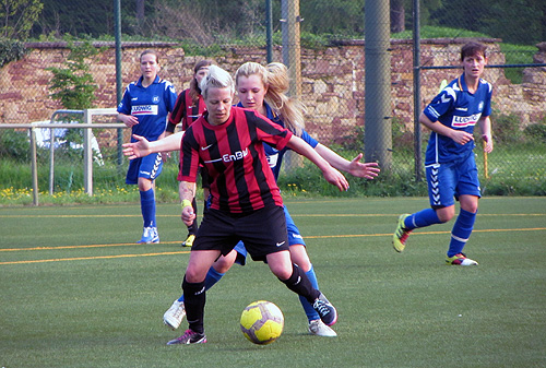 Miriam Schöll schirmt erfolgreich den Ball ab. (Foto: Sonja Kraus)