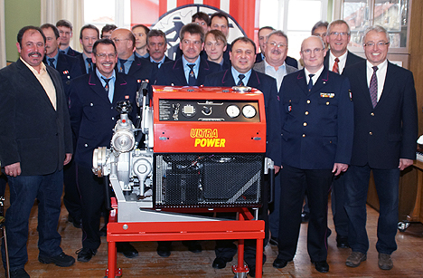 In einem Rückblick über das Pumpenwesen in Schollbrunn, durften die Zuhörer interessante Details erfahren. So besaß die Feuerwehr schon um 1901, eine sogenannte Abprotzspritze der Firma Carl Metz Heidelberg aus dem Jahre 1888. Darauf folgte eine Tragkraftspritze TS 4, da die damalige Wasserversorgung für eine größere Pumpe nicht ausreichte. Nach dem ein Löschwasserbehälter erbaut und auch das Leitungsnetz erweitert worden war, stellte die Wehr im Jahr 1970 eine Tragkraftspritze 8/8 in Dienst. Diese Pumpe wurde nunmehr nach 43 Jahren durch die neue Tragkraftspritze abgelöst. Für diese Neuanschaffung bedankte sich Abteilungskommandant Helm, auch im Namen seiner Mannschaft, bei allen Verantwortlichen, die zu dem Gelingen beigetragen haben.