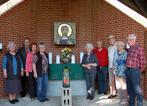 Während einer kleinen Feierstunde im Beisein von Bürgermeister Thomas Ludwig gaben die noch verbliebenen Familien Fischer (Ballweg), Hilpert, Stromer (Nonnenmacher) und Willard die Pflege von Kapelle und Außenanlage aus Alters- und Zeitgründen endgültig an die Eheleute Helga und Emil Donneberg ab. Natürlich gibt es auch hier eine enge Verbindung zur Kapelle, denn Emil Donnebergs Onkel Wilhelm wirkte während der Bauzeit in den 60-er Jahren als Vorsitzender und Sprecher des Bauausschusses mit.