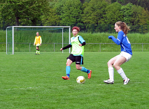 Die Klinge-Mädchen zeigten von Anfang an ein konzentriertes Spiel und kamen mehrere Male vor das gegnerische Tor. Doch auch Rohrbach machte Druck auf das Tor der Odenwälderinnen und erspielte sich gute Chancen, jedoch ohne Erfolg. Die Heimmannschaft aus Seckach war es, die mit 1:0 in Führung ging. A. Serpa nutzte den Abschlag der eigenen Torhüterin, setzte sich gekonnt über die rechte Seite bis zum gegnerischen Tor durch und schob den Ball ins Tor. Dies war nur der Anfang einer regelrechten Torserie für Seckach. Kurze Zeit später verwandelte M. Münch einen Freistoß direkt. Nicht lange nach dem Anspiel legte M. Münch den Ball auf L. Lind, welche den Ball im Tor versenkte und den Spielstand auf 3:0 erhöhte. Weiterhin machte die Heimmannschaft viel Druck nach vorne, Rohrbach kam hingegen immer seltener vor das Klinge-Tor. Dennoch blieb es bis zur Halbzeit bei einem Stand 3:0.
