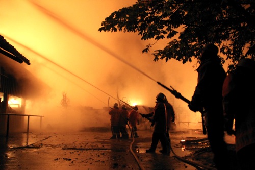 Bei einem Brand auf dem Birkhof bei Seckach arbeiteten im Oktober 2010 Feuerwehren aus dem ganzen Landkreis bei einem Großbrand zusammen und konnten ein Übergreifen der Flammen auf weitere Gebäude verhindern. (Foto: Grimm)