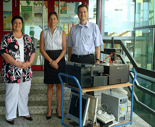 Julia Beckfeld tritt in die Fußstapfen ihres Vaters Klaus Beckfeld, der an gleicher Stelle eine Direktion der DVAG betrieb. Aus dieser Zeit ist noch einiges an Technik vorhanden. „Im Zeitalter von Tablet-PCs wie dem iPad, können wir die Technik der vorangegangenen Generation nicht mehr sinnvoll einsetzen“, so Julia Beckfeld. Deshalb stellte sich die Frage, was damit geschehen soll. Im Gespräch mit Ingo Link wurde dann die Idee geboren, eine Spende an die örtliche Schule zu machen. Die Schulleiterin Andrea Stojan zeigte sich hocherfreut. „Hier an der Schule können wir das alles noch sehr gut gebrauchen!“, meinte sie.