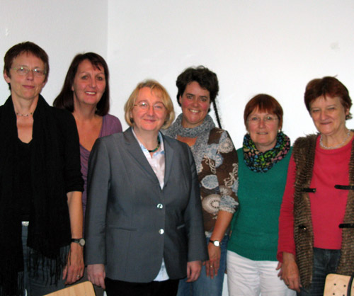Die hiesigen grünen Politikerinnen (von links nach rechts Dorothee Roos, Anna Leischner, Christine Böhm, Dorothee Rittmann-Minninger und Christine Denz) beim Besuch der Wissenschaftsministerin Theresia Bauer (3. von links) in Mosbach. (Foto: pm)