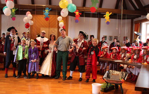 Mudau. (lm) Lautstark bahnte sich die „Krachkapelle“ der Karnevalsgesellschaft „Mudemer Wassersucher“ ihren Weg die Treppe hinauf zum Bürgersaal der Gemeinde. Im Gefolge hatten die Musikanten neben dem Prinzenpaar mit Ihrer Lieblichkeit Prinzessin Martina I. und Seiner Tollität Prinz Klaus IV. sowie Wassersucher Noby Münch auch den Wassersucherrat, alle Garden der KaGeMuWa und natürlich das große Gefolge der Spitzdudden. Bei dieser Übermacht hatten Bürgermeister Dr. Norbert Rippberger und seine Rathausmannschaft keine Chance. Mit sanfter Gewalt wurde die gesamte Verwaltung bis Aschermittwoch „entmachtet“.