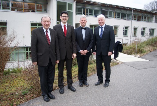 Der Vorstand der Johannes-Diakonie und das neue Führungsduo im Geschäftsbereich Gesundheit: (v. l.) Dr. Hanns-Lothar Förschler, Vorstandsvorsitzender, Alexander Straus, Geschäftsbereichsleiter Gesundheit, Dr. Karsten Rudolf, Ärztlicher Direktor, Jörg Huber, Pädagogischer Vorstand. (Foto: pm)