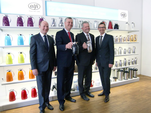 Alois Gerig war beeindruckt von den Leistungen des Traditionsunternehmens, das er zum ersten Mal besuchte. Während des Rundgangs durch die gesamte Produktion stellte der Bundestagsabgeordnete fest, „dass alfi ein modernes und innovatives Unternehmen ist, das die Marktentwicklungen und Kundenanforderungen hervorragend aufgegriffen hat“. Die „Innovationsfähigkeit des Unternehmens ist eine wesentliche Grundlage für den Bekanntheitsgrad der Marke „alfi“ und den hochwertigen Produkten im In- und Ausland“, so Oberbürgermeister Stefan Mikulicz.