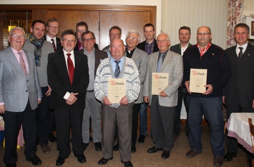 Dem 1. Vorsitzenden selbst oblag es anschließend, einige besonders treue und engagierte Mitglieder auszuzeichnen: Die Silberne Ehrennadel für 15 Jahre aktive Mitgliedschaft in der Trachtenkapelle erhielten Katharina Schwing und Markus Dierolf und die Goldene Ehrennadel mit eingravierter Jahreszahl für 40 Jahre aktive Mitgliedschaft ging an Dirigent Ralph Müller. Für 40 Jahre passive Mitgliedschaft wurden Michael Grimm, Kurt Hirschner, Richard Korger, Helmut Mai, Helmut Scheuermann, Klemens Scheuermann und Peter Schlär mit der Goldenen Ehrennadel ausgezeichnet. Aufgrund seiner besonderen Verdienste und über 40jähriger Mitgliedschaft wurde Dirigent Ralph Müller einstimmig zum Ehrenmitglied ernannt. Der bedeutenden Tradition folgend wurde im Rahmen der Wahl zum „Musiker des Jahres“ 1. Trompeter Martin Fleischer in diesem Jahr mit diesem Titel gewürdigt.