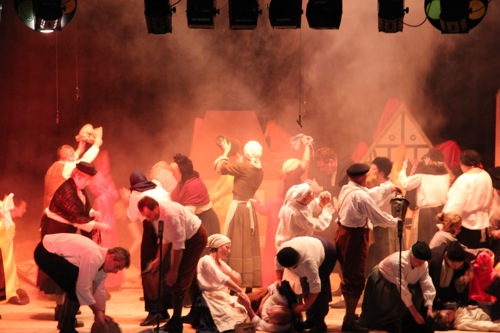 Schon das vierte Musical mit historischem Hintergrund und aus der eigenen Feder führt die Kantorin Iris Thierolf mit den Chören der evangelischen Kirchengemeinde Beerfelden Ende Juni auf. Das Foto zeigt eine Szene aus dem letzten Musical „Der Brand von Beerfelden“. Musikalisch unterstützt werden die Chöre in gewohnter Weise von der Kurpfalzphilharmonie Heidelberg, unter der Leitung von Konzertmeister Arne Müller. (Foto: pm)