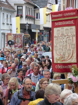 Walldürn. (pm) Der Dokumentarfilm „Näher zu Gott“, wird am Donnerstag, 22. Mai 2014 um 20:15 Uhr in voller Länge auf Bibel-TV gesendet. Seit mehr als 600 Jahren ist der Eucharistische Wallfahrtsort Walldürn das Ziel größerer und kleinerer Wallfahrten. Im Sommer 1998 begleitete ein Kamerateam zwei der größten Pilgergruppen, die von Köln und von Fulda, auf ihrem Weg zur Heilig-Blut-Gnadenstätte im Odenwald. Bei dieser Dokumentation wird der einzigartige Charakter der Wallfahrt eingefangen und es sind bewegende Bilder von Menschen und Landschaften entstanden. Zusätzliche Interviews mit den Beteiligten und Dokumente, die der Öffentlichkeit bisher unzugänglich waren, zeichnen ein umfassendes Bild dieses Ereignisses, seiner Ursprünge und Entwicklung.