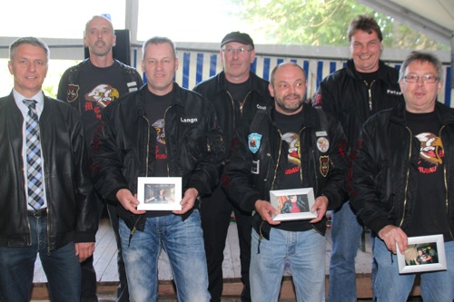 Michael Münch schloss den kurzen offiziellen Part mit der Würdigung von Klaus Späth, genannt „Fetze“ für 25 jährige Mitgliedschaft mit einer MC-Torte sowie der verbliebenen vier Gründungsmitglieder „Möps“ Andreas Möbius, „Jobble“ Werner Schell, „Cowboy“ Reiner Schölch und „Lango“ Peter Püchner mit einem besonderen Präsent sowie dem aufrichtigen Dank für deren treue Kameradschaft.