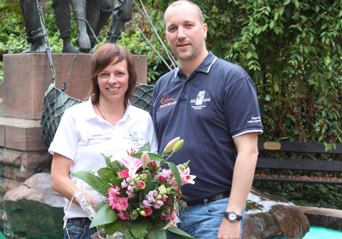 Der fachliche Leiter Carsten Link dankt der Jubilarin Nadia Lauber für ihr Engagement. (Foto: privat)