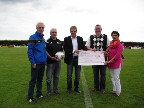 bfv-Vizepräsident Jürgen Galm übergab die Spende im Rahmen des Relegations-Endspiels in Hundheim.