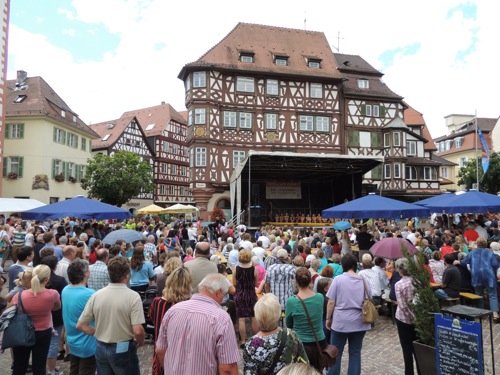 Rund 40 Vereine und Organisationen beteiligen sich: Auf der Bühne sind dabei der VfB Waldstadt, der Türkische Elternverein, die Landsmannschaft der Donauschwaben, die Abteilungen Gymnastik und Tanz, Turnen und Judo sowie Ju-Jutsu des TV Mosbach 1846 mit (Kinder)Tanzprogrammen, Turn- und Kampfvorführungen, die Spielvereinigung Neckarelz. Gesang in ganz unterschiedlichen Vorträgen steuern der NKG-Männerchor, der Gesangverein Hoffnung und die HarmoNixen bei. Die Musikschule zeigt Ausschnitte aus einem Kindermusical, bevor Al Hadara mit einem Orientalischen Tanz das Programm um ca. 18.00 Uhr beendet. Der Musikverein und der Spielmannszug Mosbach sowie der Kinderchor Idefixe als auch die Troubadix bringen Ständchen an verschiedenen Orten der Altstadt dar. Die Moderation hat Friederike Kroitzsch übernommen.