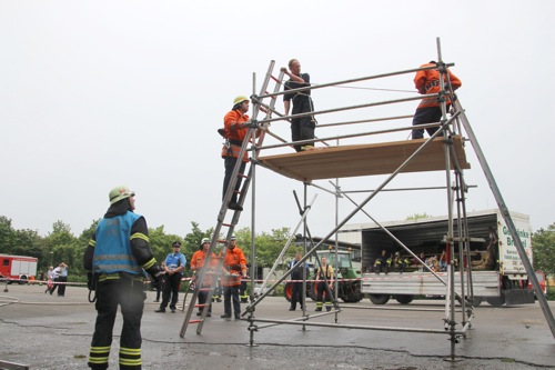 Bei der durchgeführten Abnahme der Stufe „Bronze“ muss ein Löschangriff mit Personenrettung über eine Leiter innerhalb von sieben Minuten möglichst fehlerfrei vorgeführt werden. Unter den Augen der Schiedsrichter-Mannschaft um Schiedsrichter-Obmann Thomas Link und des Kreisbrandmeisters Jörg Kirschenlohr sowie seines Stellvertreters Erich Wägele zeigten die Mannschaften durchweg gute Leistungen.