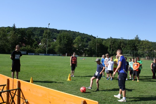 Bei der Station „Dribbelkünstler“ galt es, mit dem Ball durch markierte Zonen zu dribbeln, den Ball zu stoppen, Markierungen zu umlaufen und durch Engstellen zu spielen. Auch mussten Stangen übersprungen werden ohne den Ball zu verlieren. Ein „Kurzpass-Ass“ konnte man nur werden, wenn man den Ball gegen eine umgelegte Bank spielte und der Ball genau in die Pass-Zone zurückprallte. Dort musste er geschickt gestoppt werden, um erneut zu passen. Beim „Elferkönig“ schießt der Spieler den Ball aus sieben Meter Entfernung auf das Tor. Besonders viele Punkte konnten hier gesammelt werden, wenn man oben traf.