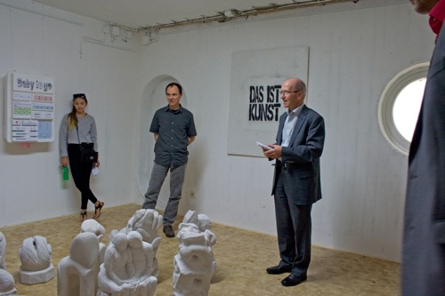 Solange es junge Menschen gibt, die sich mit den Gegebenheiten des gesellschaftlichen Lebens auseinandersetzen, kann man positiv in die Zukunft schauen. Neben den Ausstellungsstücken im Cube wurden im Schulhaus verteilt abstrakte Plastiken einer achten Klasse sowie Zeichnungen und Fotoarbeiten von Schülerinnen und Schülern aus der Jahrgangsstufe gezeigt. Beeindruckend hierbei waren die Vielfältigkeit einerseits und die künstlerische Qualität andererseits. An der Umsetzung der Schülerideen war neben Thomas Breuer auch dessen Kunstkollegin Johanna Kittel beteiligt, unter deren Einsatz und Unterstützung sich in jüngster Vergangenheit viel Positives entwickelt hat.