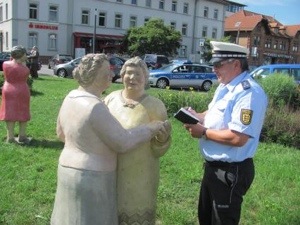beiden an, die Betonfiguren nicht absichtlich beschädigt zu haben.