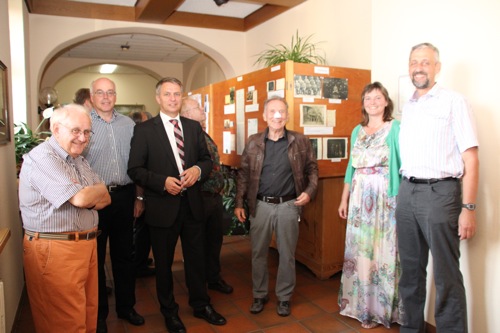Unter Anwesenden begrüßte Dr. Rippberger nicht nur Bürgermeister i.R. Wilhelm Schwender und Karl-Heinz Neser als Mitherausgeber von „Unser Land“, sondern auch die Vorsitzenden von VöG Schloßau/Waldauerbach und HVV Dr. Edmund Link und Hans Slama. Darüber hinaus Rektorin Sophie Klopsch, Rektor i. R. Ernst Hauk und Konrektor Walter Hauk und Gernot Hauk sowie zahlreiche interessierte Bürger. Er empfahl die Ausstellung, die bis mindestens 12. September in den bestfrequentierten Räumen und zu den Öffnungszeiten des Rathauses zu erkunden ist, vor allem den Jugendlichen, die möglicherweise dabei auch ein Stück Geschichte und das Empfinden der eigenen Vorfahren entdecken.