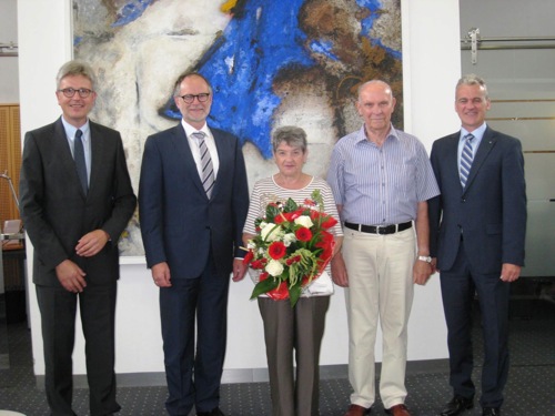 Mosbach. (pm) Beim beliebten Lotteriesparen der Sparkasse Neckartal-Odenwald war dieses Mal Karl-Heinz Oberdorf aus Mosbach der glückliche Gewinner. Kundenberater Werner Neureuther(links), Sparkassendirektor Helmut Augustin und Regionaldirektor Andreas Schulze (rechts) gratulierten den Eheleuten Oberdorf und überreichten den großartigen Gewinn in der Sparkassen-Kundenhalle Mosbach.